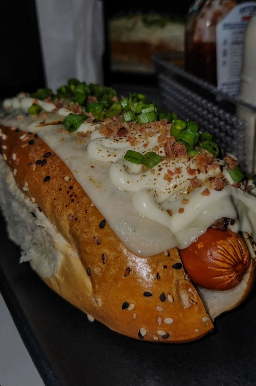 Pão, Carne de Sol, Salsicha, Batata Palha, Milho Verde, Cebolinha, Bacon Crispy, Queijo Maçaricado e Molho Especial.